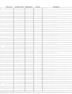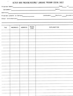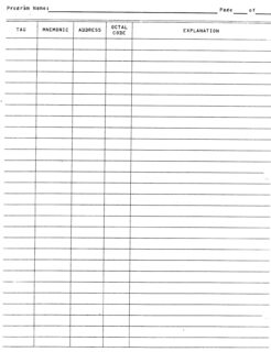 Even when I began programming in the late '70s, with microcomputers where you were the sole user and interacted, you were encouraged to write out your programs ahead on paper, to think before programming. While not strictly necessary, it turns out that was a good discipline, and I continued to do it in high-level form ("pseudo-code") for a long time. And so I have an anachronistic fondness for coding forms, photocopied/mimeographed grids for writing your program in. Whenever I find them in old computer books, I get a good scan, clean it up as much as possible, and post it here:
