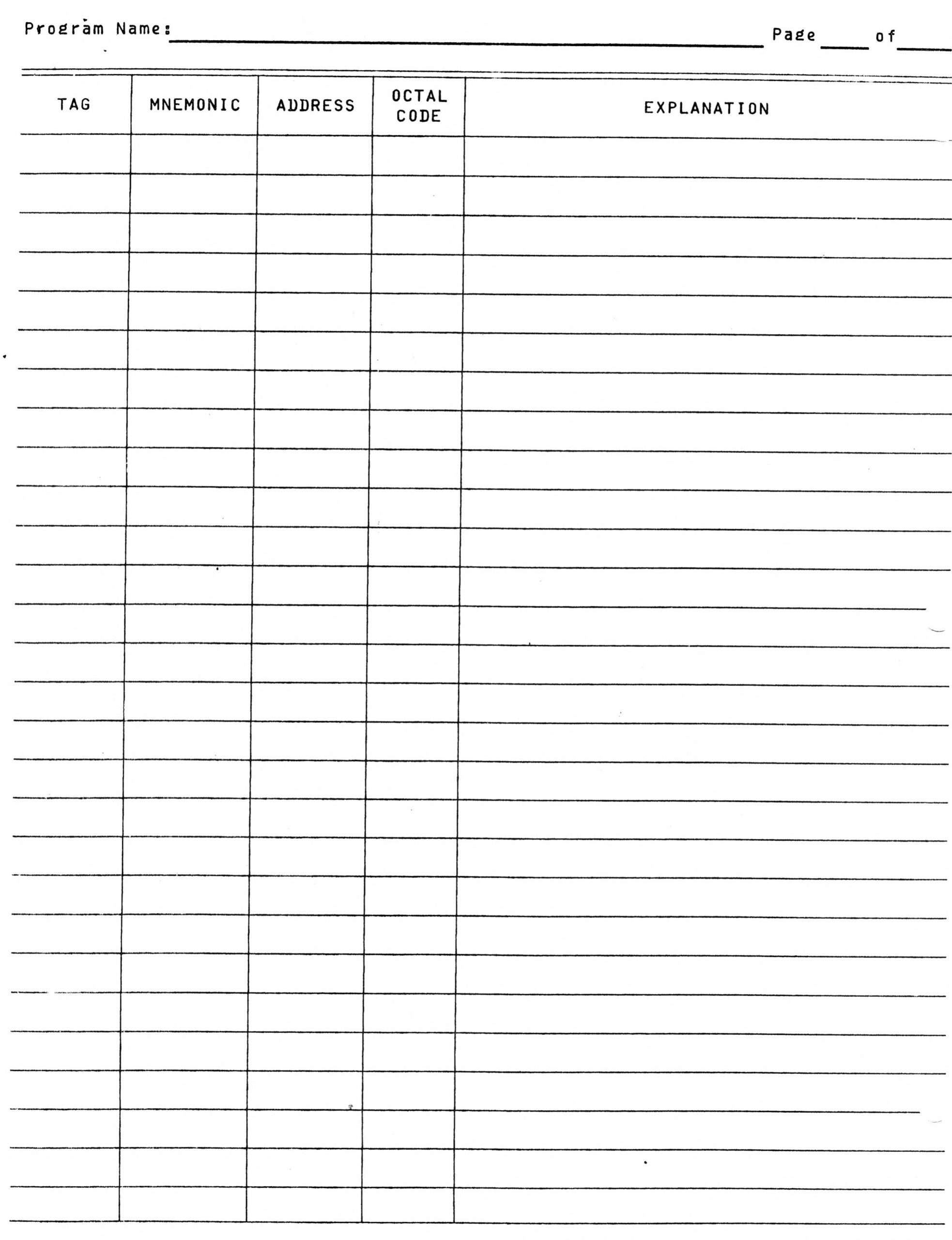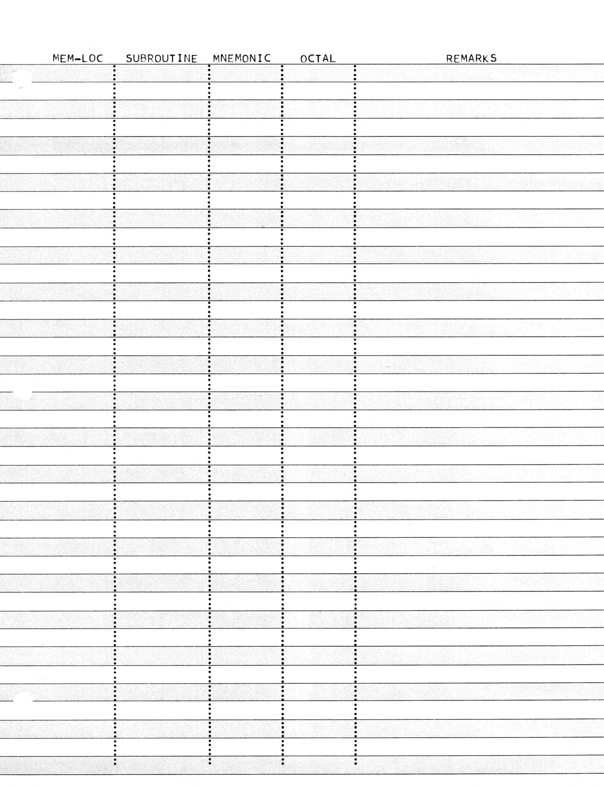 Even when I began programming in the late '70s, with microcomputers where you were the sole user and interacted, you were encouraged to write out your programs ahead on paper, to think before programming. While not strictly necessary, it turns out that was a good discipline, and I continued to do it in high-level form ("pseudo-code") for a long time. And so I have an anachronistic fondness for coding forms, photocopied/mimeographed grids for writing your program in. Whenever I find them in old computer books, I get a good scan, clean it up as much as possible, and post it here: